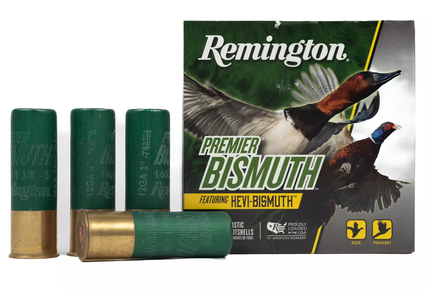 12/76 Remington Premier Bismuth on suunniteltu käytettäväksi ympäri vuoden ja on täysin myrkytön vaihtoehto (tiheys 9.6 g/cc). Valitse Premier Bismuth, niin saat luotettavaa suorituskykyä ja täsmällisiä osumia, metsästitpä sitten kosteikkoalueilla tai kuivalla maalla.