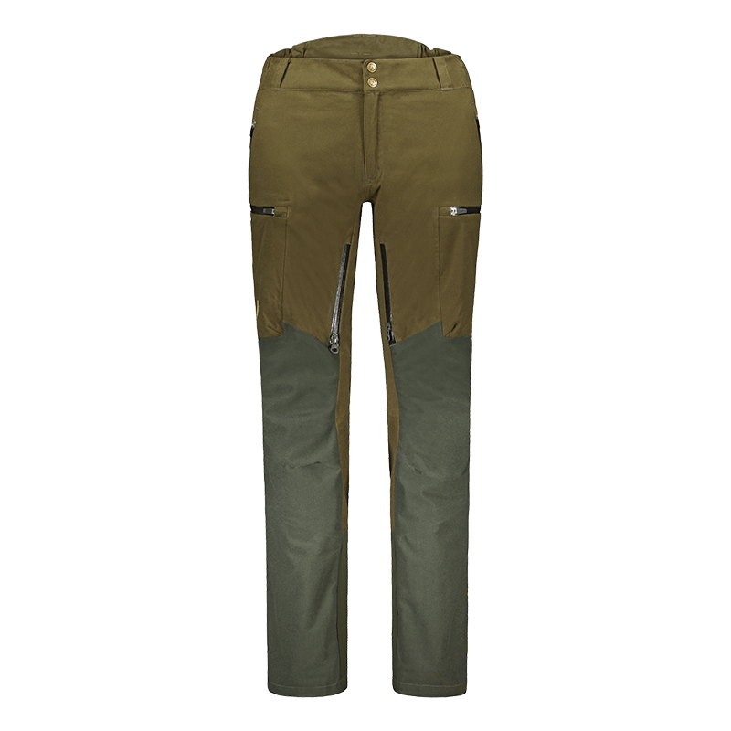valmistajan YKK:n vetoketjut takaavat pitkän käyttöiän ja toiminnan. Vyötäröllä oleva joustava säätö mahdollistaa erinomaisen istuvuuden. Vaatteet seuraavat metsästäjän liikkeitä kuin toinen iho. Sivuilla olevat vetoketjulliset tuuletusaukot ovat parhaimmillaan lämpimällä säällä aktiivisessa jahdissa.
