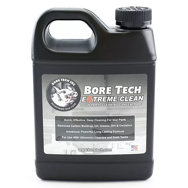 BoreTech Extreme Parts Cleaner on ihanteellinen AR-pulttien ja pultinkantajien, liekinsammuttimien, kompensaattoreiden, revolverisylinterien, kaasumäntien ja muiden raskaasti likaantuneiden osien puhdistukseen.