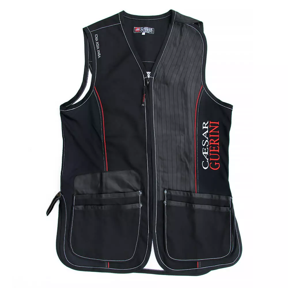 Liivin tyylikäs musta väritys ja hillityt Caesar Guerini -logot heijastavat italialaista muotoilua ja brändin urheilullista eleganssia. Takana oleva hengittävä verkkopaneeli ja säädettävä vyötärö takaavat täydellisen istuvuuden eri vartalotyypeille. Liivi on suunniteltu kestämään toistuvaa käyttöä niin kilpailuissa kuin harjoituksissakin.