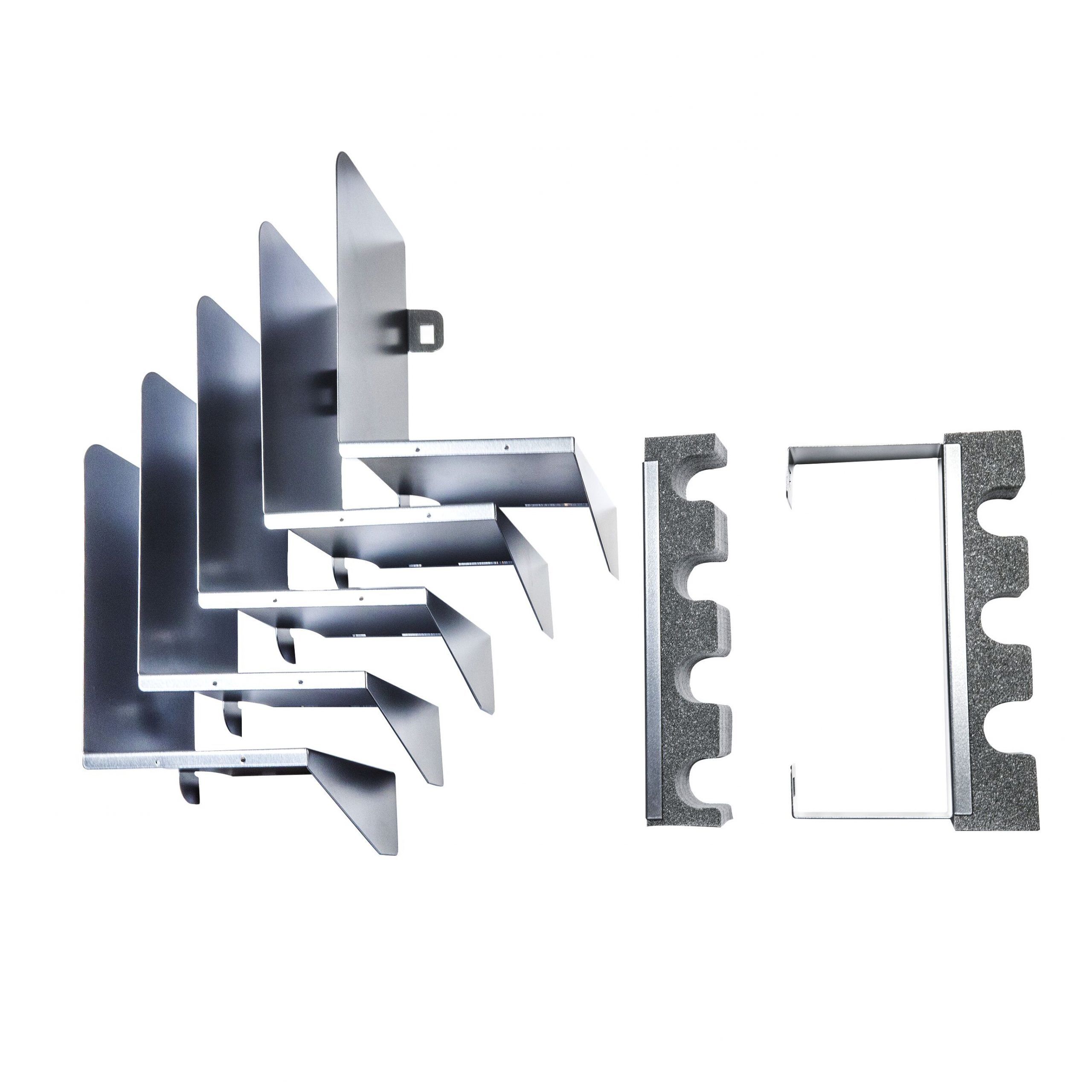 Sarjassa 2 kpl kiinnikettä joihin voi kiinnittää 20-30mm halkaisijaltaan olevia tarvikkeita. Sopii erinomaisesti Blaserin irtopiippujen säilyttämiseen esim. kaapin ovessa.