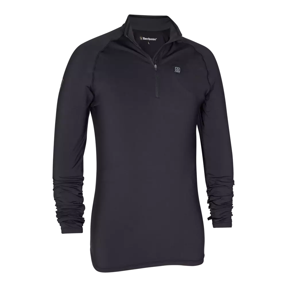 Deerhunter Heat Undershirt With Zip-neck Black lämmitettävä aluskerrastopaita, joka toimii ladattavalla virtapankilla. Paidassa on kolme lämpöasetusta, ja sen lämmityselementit sijaitsevat selkäosassa, missä kylmyys usein tuntuu eniten.