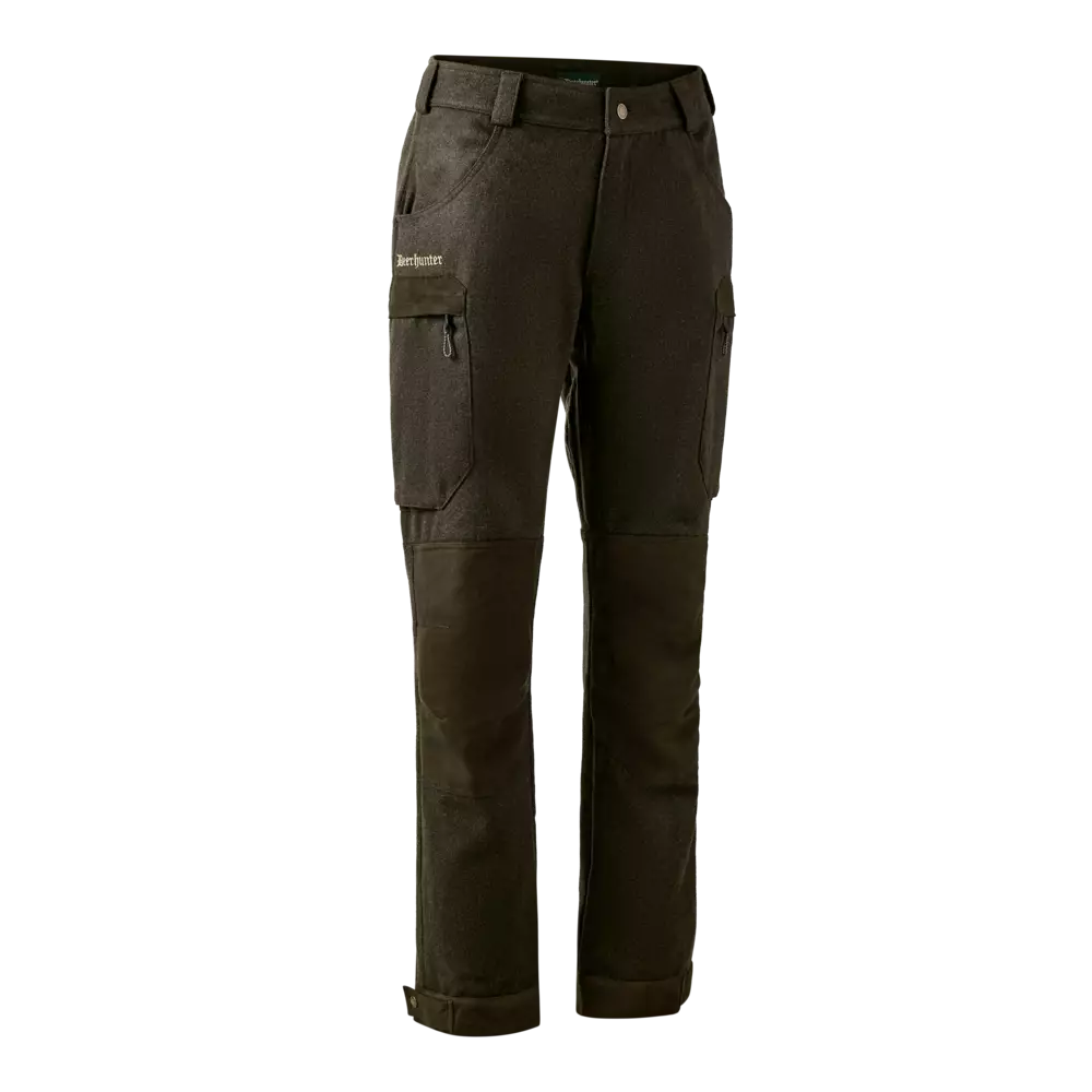 Deerhunter Tatra Trousers Loden Wood tarjoavat villasekoitteen luonnollista lämpöä ja lämpötilansäätelyä yhdistettynä hengittävän verkkovuorin tuomaan käyttömukavuuteen.