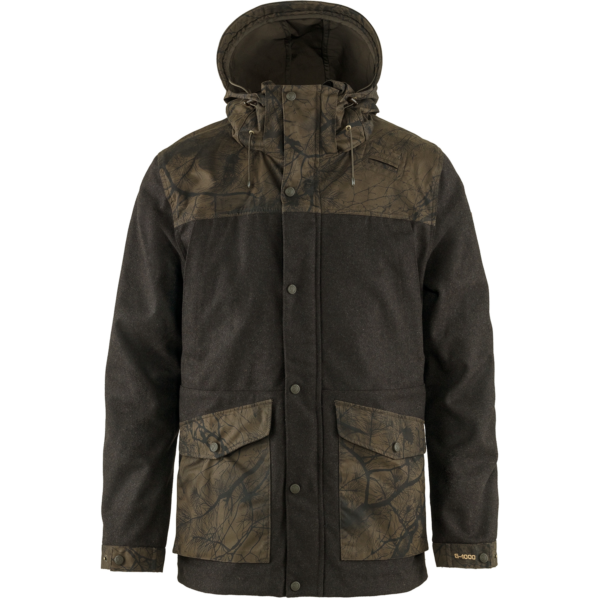 Tämä kestävä ja säänkestävä metsästystakki on valmistettu kierrätetystä villasta ja G-1000 Silent -materiaalista.