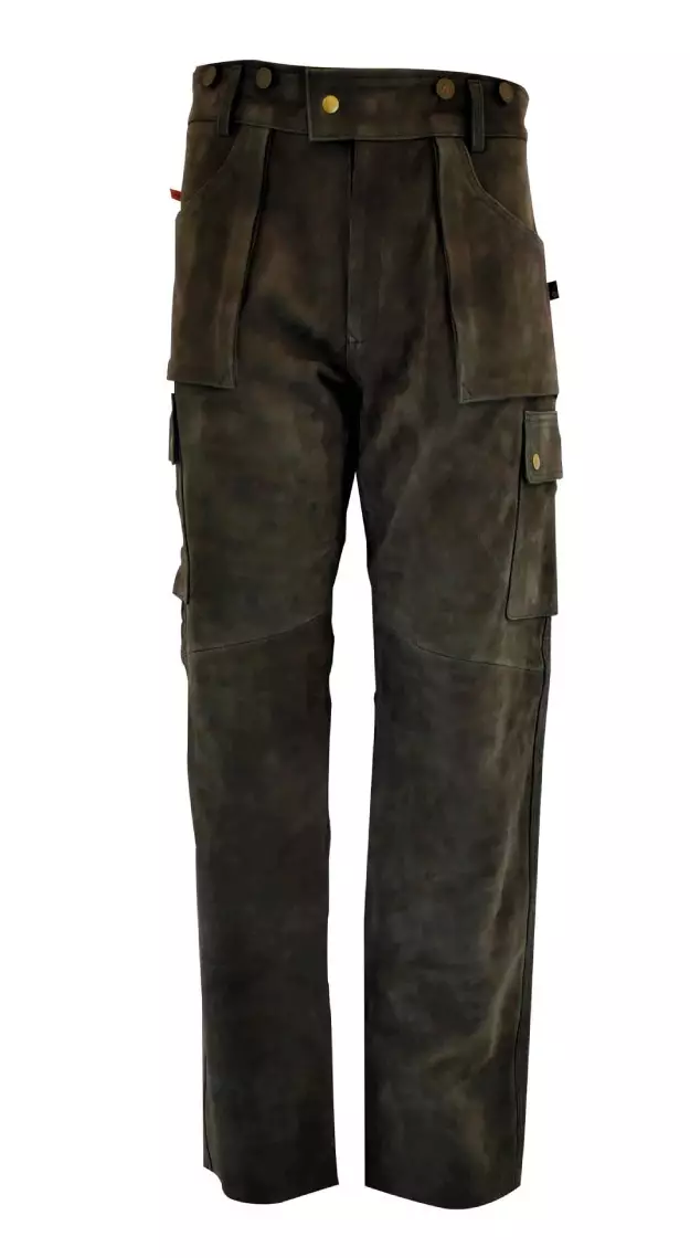 Nordhunt Balfour Pant miesten metsästyshousut, jotka on valmistettu korkealaatuisesta lehmän- ja puhvelinnahasta. Housut ovat suunniteltu kestämään vaativia olosuhteita ja tarjoamaan mukavuutta käyttäjälleen.