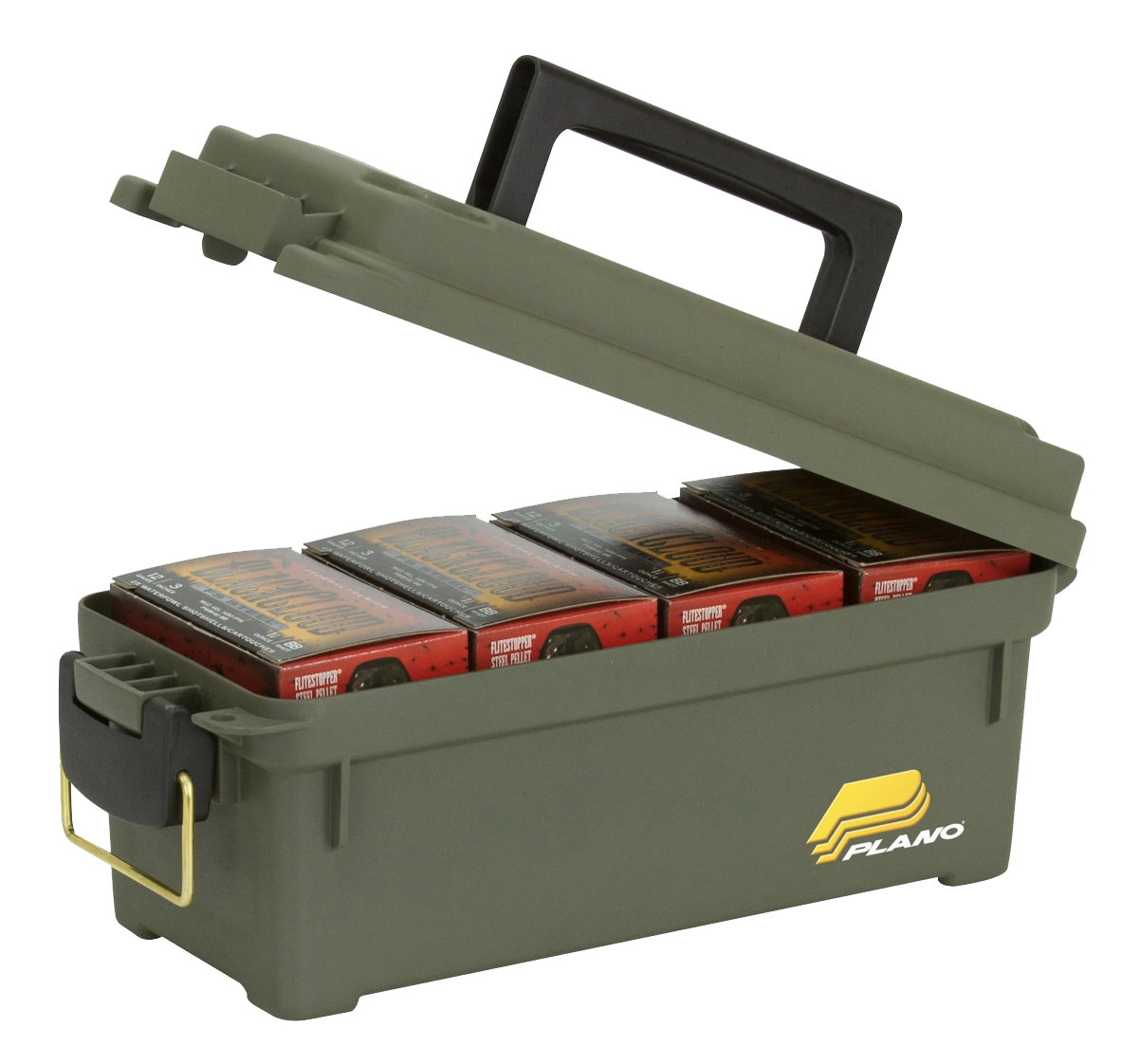 Plano Shot Shell Box on Plano patrunalaatikko-valikoiman pitkäaikainen suosikki! Tähän mahtuu jopa 4 rasiaa haulikon patruunoita. Siinä on vedenkestävä O-rengastiiviste ja messingillä varustettu lukko, joka varmistaa erittäin turvallisen sulkemisen pitäen veden ja pölyn poissa. Mutta älä ajattele sitä vain haulikon patruunoiden laatikkona; tämä laatikko soveltuu mihin tahansa säilytykseen työkaluista kalastustarvikkeisiin.