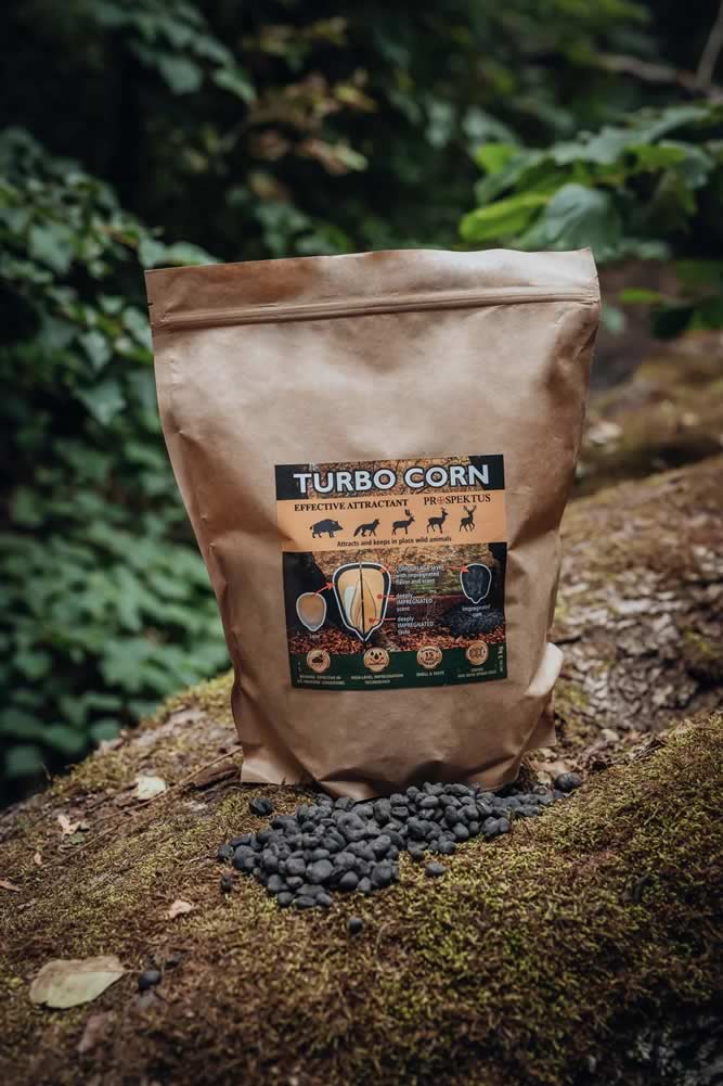 Prospektus Turbo Corn 3kg on vallankumouksellinen metsästyshoukutin ja se on suunniteltu erityisesti houkuttelemaan riistaeläimiä, kuten kauriita, peuroja, hirviä, karhuja, villisikoja ja useita muita. Erityisestä ainesosaseoksesta valmistettu ja maissilla kyllästetty TURBO CORN on erittäin houkutteleva riistaeläimille ja sen on todistettu tuovan ne lähemmäs parempaa riistalaukausta.