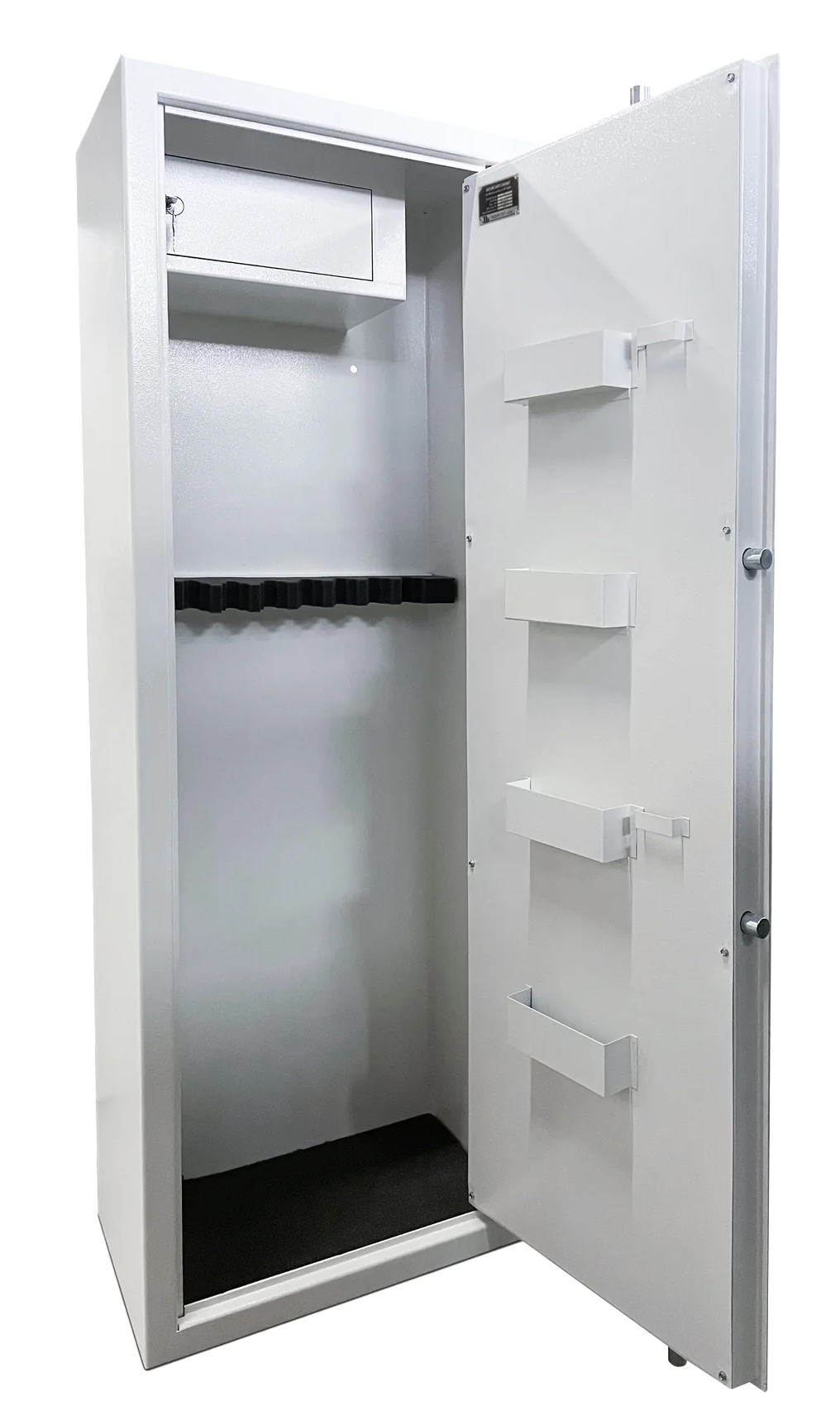 Suomi RS8 asekaappi on uuden aselain mukainen sertifioitu raskas asekaappi ja soveltuu maksimissaan 8 aseen säilyttämiseen. Asekaappi on testattu vaativan EN-14450:2006 S1 -standardin mukaisesti ja se on valmistettu erittäin kestävästä 3 mm teräksestä. Lukitukseen kaapissa käytetään murtovarmaa pulttilukitusta sekä Kaba Mauer 71111 -turvalukkoa. Lukittava ylähylly ja ovessa tilavat avohyllyt tavaroiden ja patruunoiden säilytykseen. Kaappi on myös halutessaan mahdollista pultata lattiaan tai seinään valmiiden kiinnitysreikien kautta.