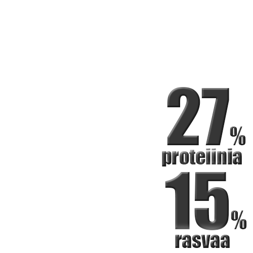 Ravintotiedot: valkuainen: 27%, rasvapitoisuus: 15%, omega-6-rasvahapot: 3.25%, omega-3-rasvahapot: 0.39%, tuhka: 6.2%, raakakuitu: 2.1%, kalsium: 1.3%, fosfori: 1.09%.