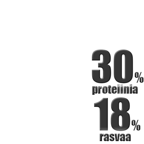 Ravintosisältö: Valkuainen: 30%, rasvapitoisuus: 18%, omega-6-rasvahapot: 3.5%, omega-3-rasvahapot: 0.78%, tuhka: 6.5%, raakakuitu: 1.8%, kalsium: 1.35%, fosfori: 1.11%, DHA: 0.18%.