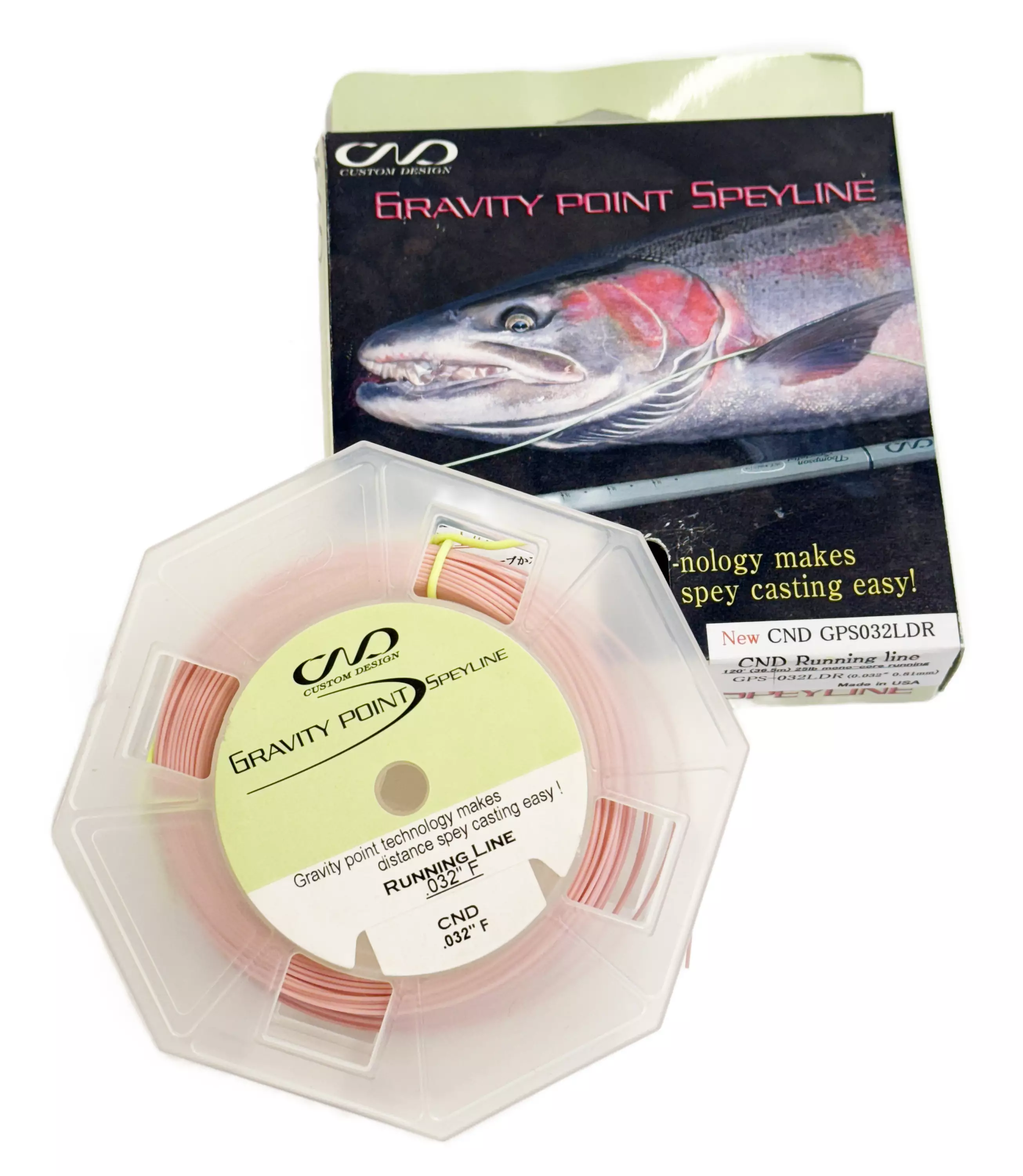 Käyttämätön CND Gravity Point Spey Line -juoksusiima. Väri lohen pinkki. Paksuus 0,032'' / 0,81mm.