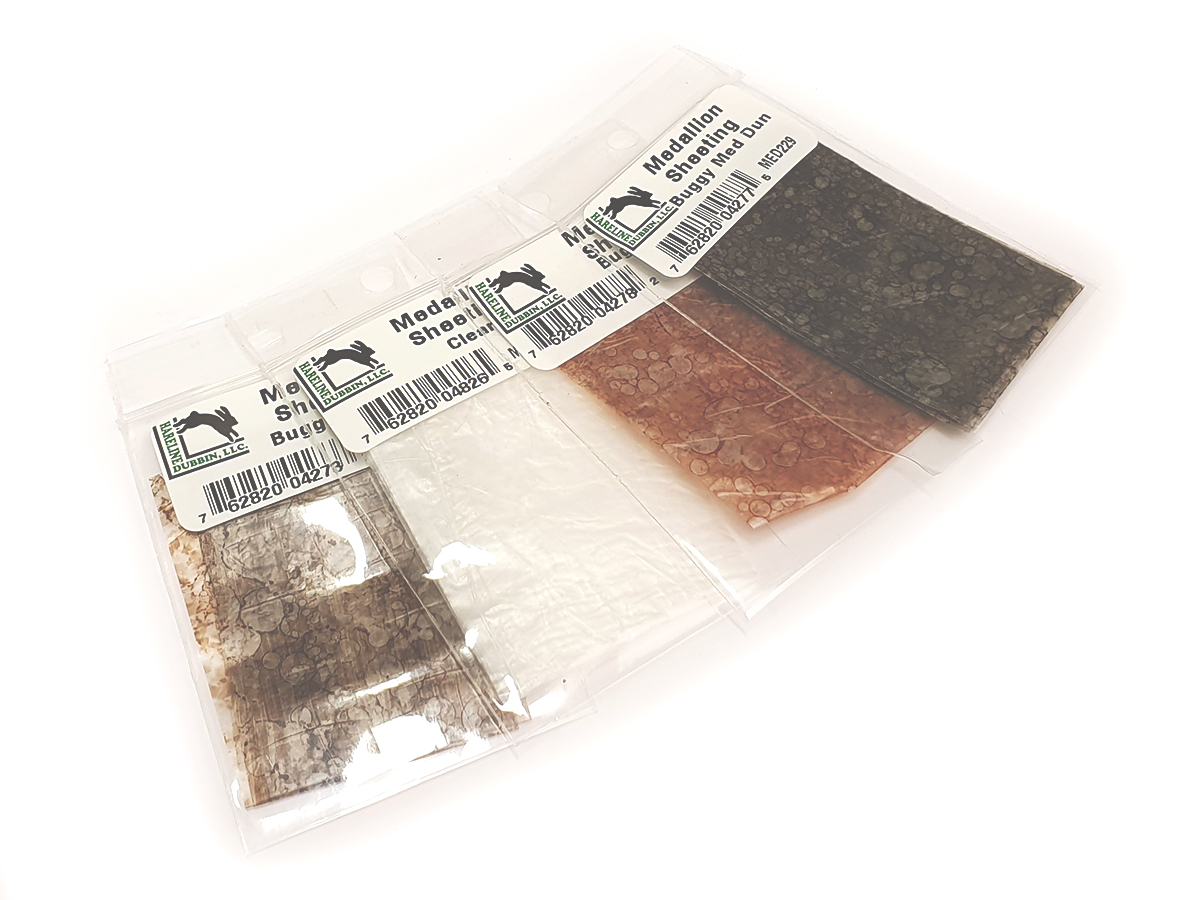 Hareline Medallion Sheeting on erinomainen materiaali realistisiin siipiin sekä siipiaihioihin ja se on valmistettu Stalcupin kalvoa vastaavaksi. Tuotteen ohut kalvo on laikukasta, joten se on erittäin realistisen näköistä. Materiaalia on helppo leikata levyistä ja sen käsittely on vaivatonta, mutta se on myös kulutuskestävää joten perhosi kestävät myös pidempään. Kalvoa käytetään pääasiassa pintaperhojen erilaisiin siipiin sekä nymfien ja pupien siipiaihioihin, joskin innovatiiviset perhon sitojat hyödyntävät sitä muissakin käyttötarkoituksissa.
