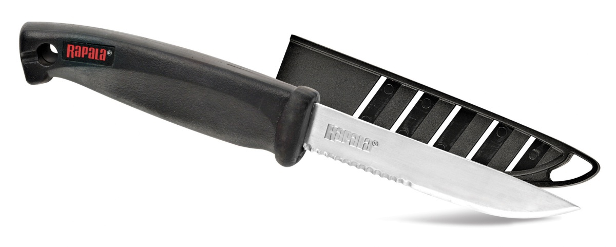 Rapala Fisherman's Utility Knife -puukko on kätevä työkalu monenlaisiin kalastajan tarpeisiin. 12 cm teränsä ansiosta se soveltuu useimpiin tilanteisiin, joita kalastaessa ja kaloja peratessa tulee vastaan. Terän tyvessä on hammastettu osa, joka helpottaa kalan avaamista sekä paksujen kuitusiimojen katkaisemista.