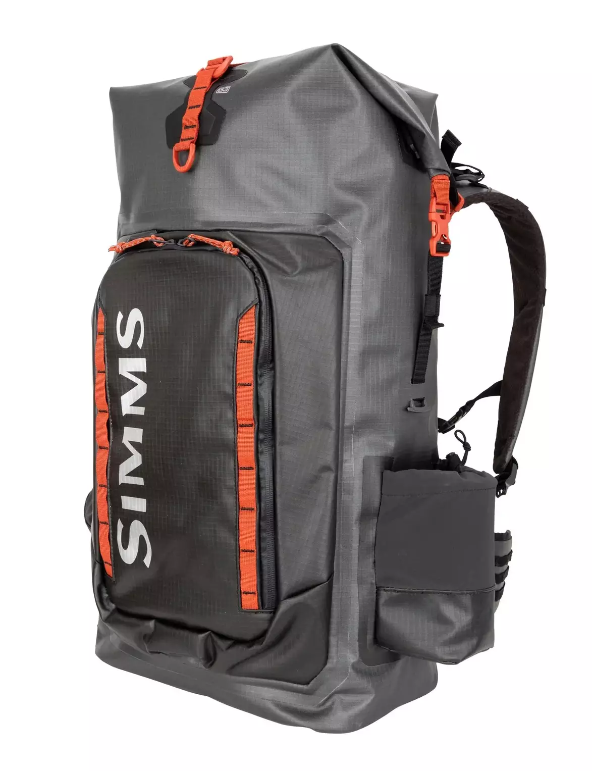 Simms G3 Guide Backpack Anvil on 40 litran vedenpitävä reppu, joka on suunniteltu kalastajien ja ulkoilijoiden tarpeisiin.