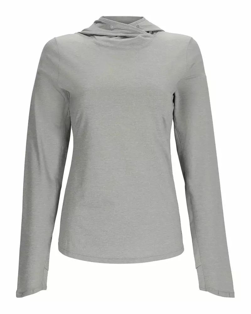 Simms Women's SolarFlex Hoody Cinder Heather kevyt ja mukava naisten huppari, joka tarjoaa erinomaisen suojan auringolta. Tämä huppari on suunniteltu erityisesti kuumille kesäpäiville, jolloin mukavuus ja suoja ovat tärkeitä.
