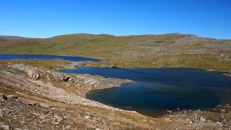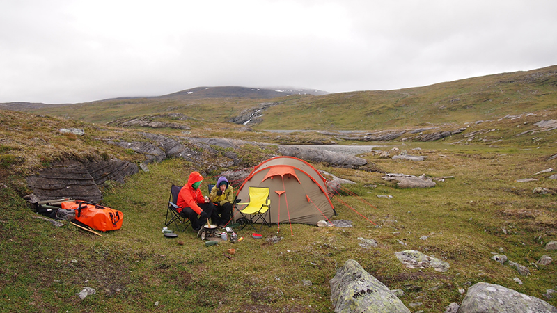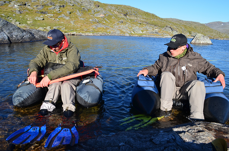 Seuraavana aamuna heräsimme haukkoen happea älyttömään kuumuuteen! Hämmentyneinä kuoriuduimme teltasta ja kohtasimme peilityynen järven ja kirkkaalta taivaalta porottavan auringon. Oli t-paitakeli – jotain mistä olimme vitsailleet ensimmäisinä päivinä! Noh, aamupala naamariin ja kamat niskaan. Tänään suunnittelimme suuntaavamme Skallojaurelle, joka sijaitsi noin 3km linnuntietä leiristä.