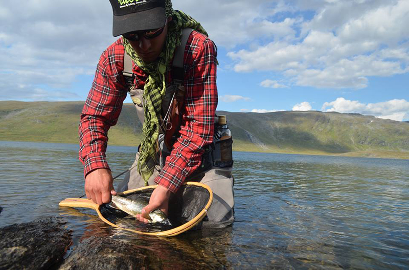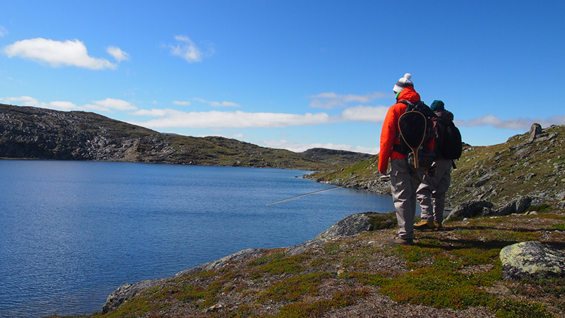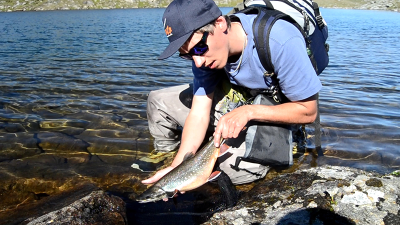 Oli hauskaa seurata parven lähestymistä ja tehdä täsmäheittoja kun kalat olivat kohdalla. Syönti oli aivan eri kuin aikaisempina päivinä. Se, johtuiko se sään viilenemisestä vai siitä että olimme eri järvellä, jäi mysteeriksi. Kaloille kelpasivat hyvin niin pinturit kuin zonkkeritkin. Mitään monstereita ei onnistuttu saamaan, mutta päivän aikana saatiin useita ihan hyvän kokoisia rautuja ja paljon tapahtumia. Iltapäivällä alkoi pikkusen kuumottamaan kun alempana laaksossa Kvikkjokkin yläpuolella näkyi melko raju ukkosmyrsky. Ikinä se ei kuitenkaan meidän luo ylös asti päässyt kiipeämään. Saimme vielä nauttia auringonpaisteesta samalla katsellessa alas salamoiden iskuja. Illan hämärtyessä suuntasimme tyytyväisinä takaisin leiriin.