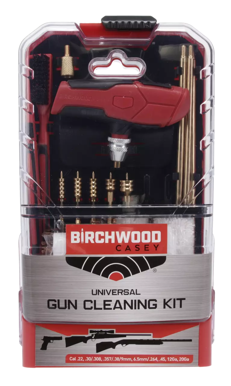 Birchwood Casey Universal Gun Cleaning Kit on monipuolinen aseen puhdistussarja, joka sisältää kaiken tarvittavan erilaisten aseiden puhdistukseen. Sarja sisältää: