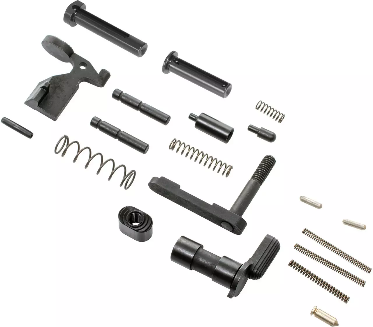 Tämä setti kokoaa yhteen AR-15 loweriin kuuluvat kriittiset pienosat, kuten bolt catch -kokonaisuuden, safety-kokonaisuuden, magazine catch -kokonaisuuden, pivot- ja takedown pins -tapit detenteineen ja jousineen sekä buffer retainerin ja jousen. Osat on mitoitettu AR-15 -yhteensopiviksi, mikä tekee kasauksesta sujuvaa ja varmistaa toimintavarman istuvuuden. Rakentajalle on hyötyä siitä, että paketti on valikoitu nimenomaan olennaisia pienosia varten.