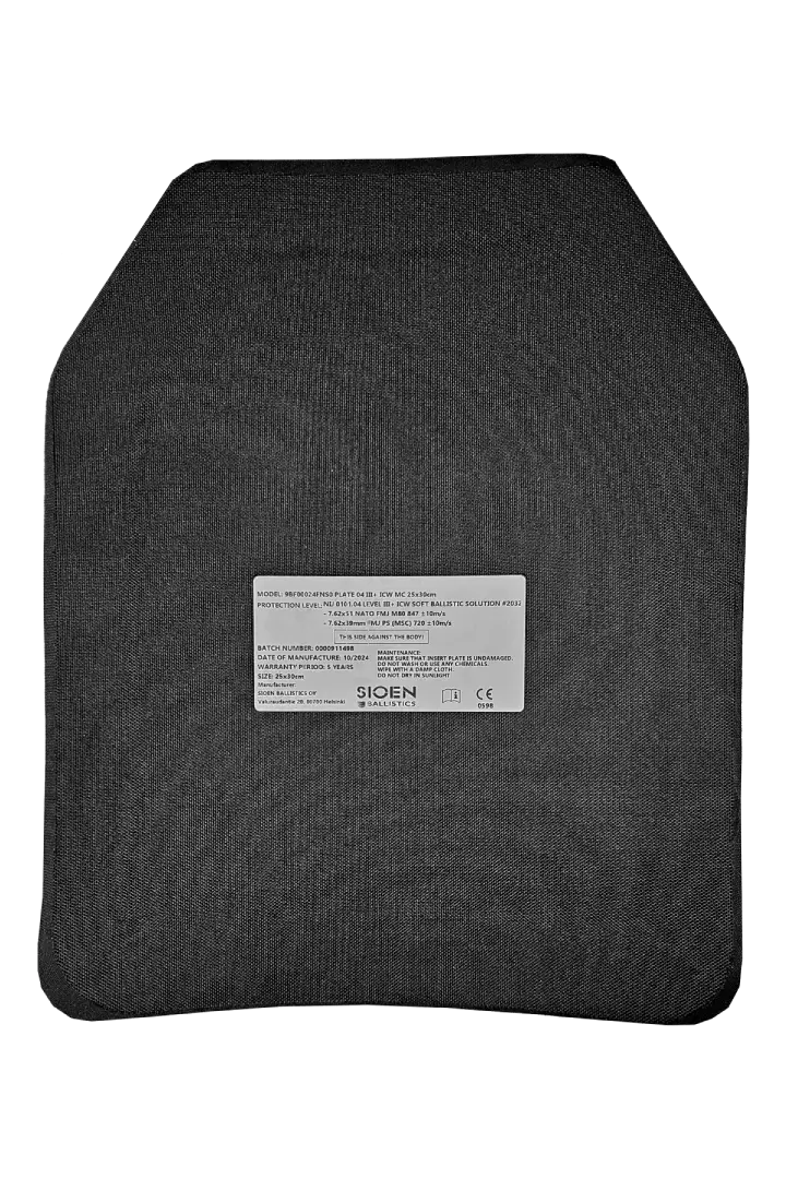 Sioen Ballistics RESTAC NIJ III+ ICW 25x30cm on ballistinen suojalevy, joka tarjoaa korkean tason suojan. Levy on suunniteltu käytettäväksi lisäsuojana ballistisissa suojavarusteissa.