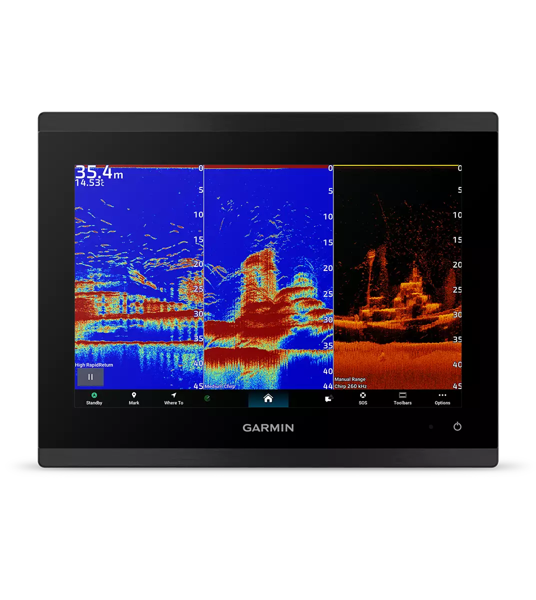 XSV-malleissa on integroitu 1 kW xCHIRP- ja Garmin RapidReturn -kaikuluotain, joiden ansiosta kalastusta voi harrastaa häikäisevällä HD-tarkkuudella. Erinomainen kohteiden erottelukyky auttaa näkemään kalat terävinä ja selkeinä.