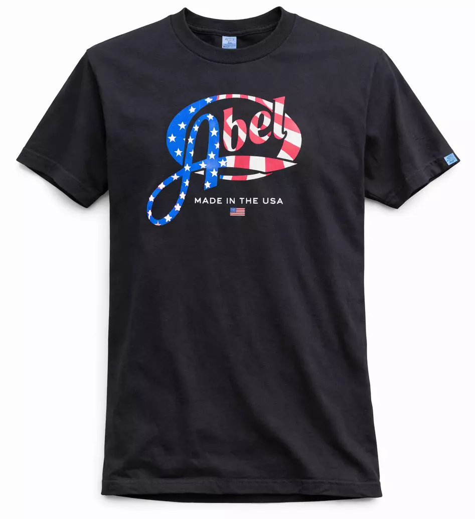 Käytetty Abel t-paita USA-lippukuviolla . Paita hyväkuntoinen ja täysin ehjä sekä puhdas. Koko miesten L.