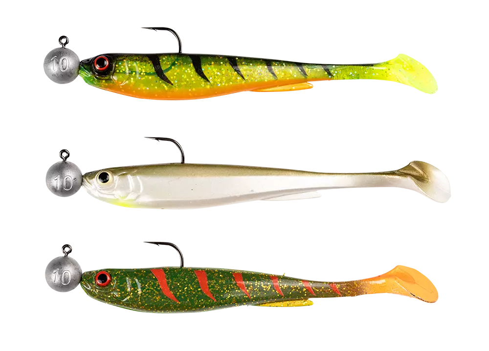 Daiwa Prorex Slim Shady Perch/Zander Set on valmis jigisetti, joka sisältää kolme jigipäätä. Tämä setti on suunniteltu erityisesti ahvenen ja kuhan kalastukseen. Jigit ovat 10,5 cm pitkiä ja varustettu 10g #3/0 jigipäillä.