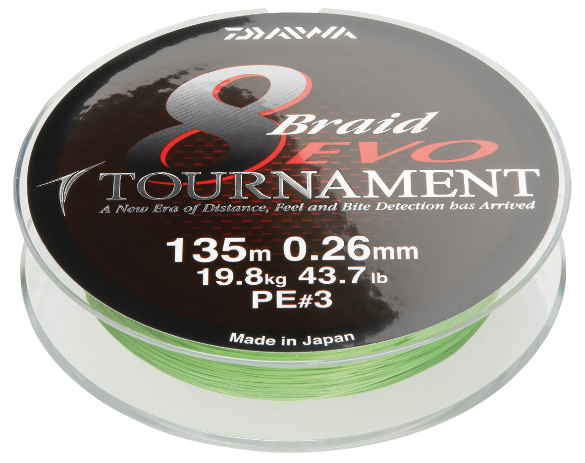 Daiwa Tournament 8 Braid EVO -kuitusiima on kahdeksasta kuidusta valmistettu, erittäin pyöreäprofiilinen, liukas ja äänetön kuitusiima. Lähes venymätön materiaali takaa uskomattoman tuntuman, jolloin tunnet hennoimmatkin tärpit ja pohjakosketukset. Japanissa valmistetun siiman hankauskestävyys on huippuluokkaa, joten se on omiaan mm. jigikalastukseen, jossa pohjan kivet ja risut hankaavat tavallisen siiman helposti hajalle