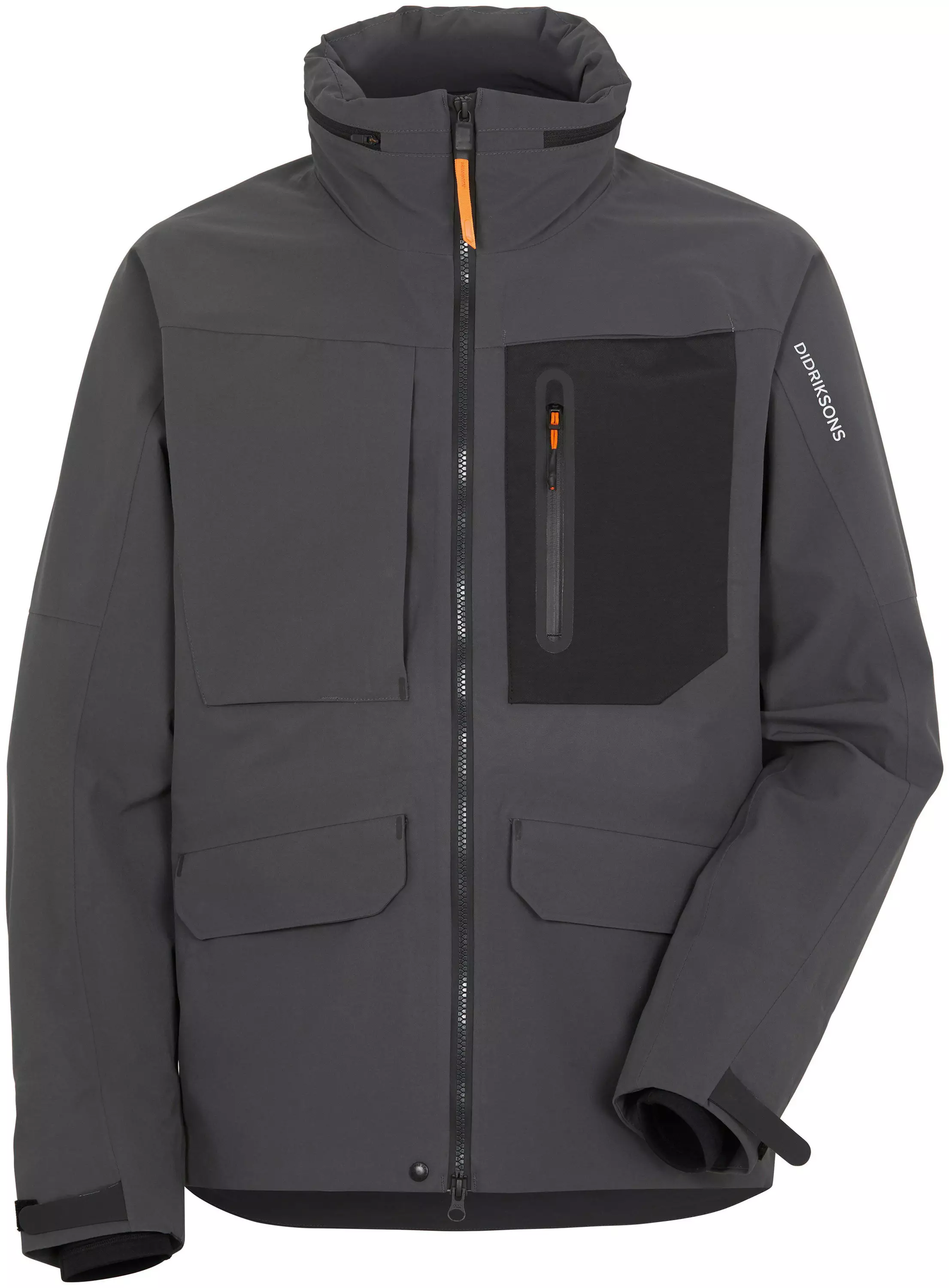 Didriksons Fractus Jacket - on uusi versio kuuluisasta Fractus takista. Fractus on täysin veden- ja tuulenpitävä takki, jossa on teipatut saumat. Se on valmistettu hengittävästä materiaalista ja kyljissä on kaksi isoa, vetoketjullista tuuletusaukkoa. Edessä on vesitiivis vetoketju jonka alla on kätevä painonappi. Takin voi sulkea vaihtoehtoisesti myös pelkällä painonapilla jolloin tuuletus paranee. Takissa on kiinteä ja säädettävä huppu jonka lippa on muokattavissa. Huppu voidaan rullata kauluksen sisään. Takissa on kaksi isoa painonapeilla varustettua taskua lantion kohdalla ja kaksi rintataskua, joissa on vettähylkivät vetoketjut. Hihansuut ovat säädettävät ja niissä on pehmeät ja nopeasti kuivuvat sisärannekkeet. Myös helma on säädettävä. Heijastavasta materiaalista valmistettu logo rinnan kohdalla ja vasemmassa hihassa. Tuotteessa on PFC-vapaa vedenhylkivyyskäsittely.