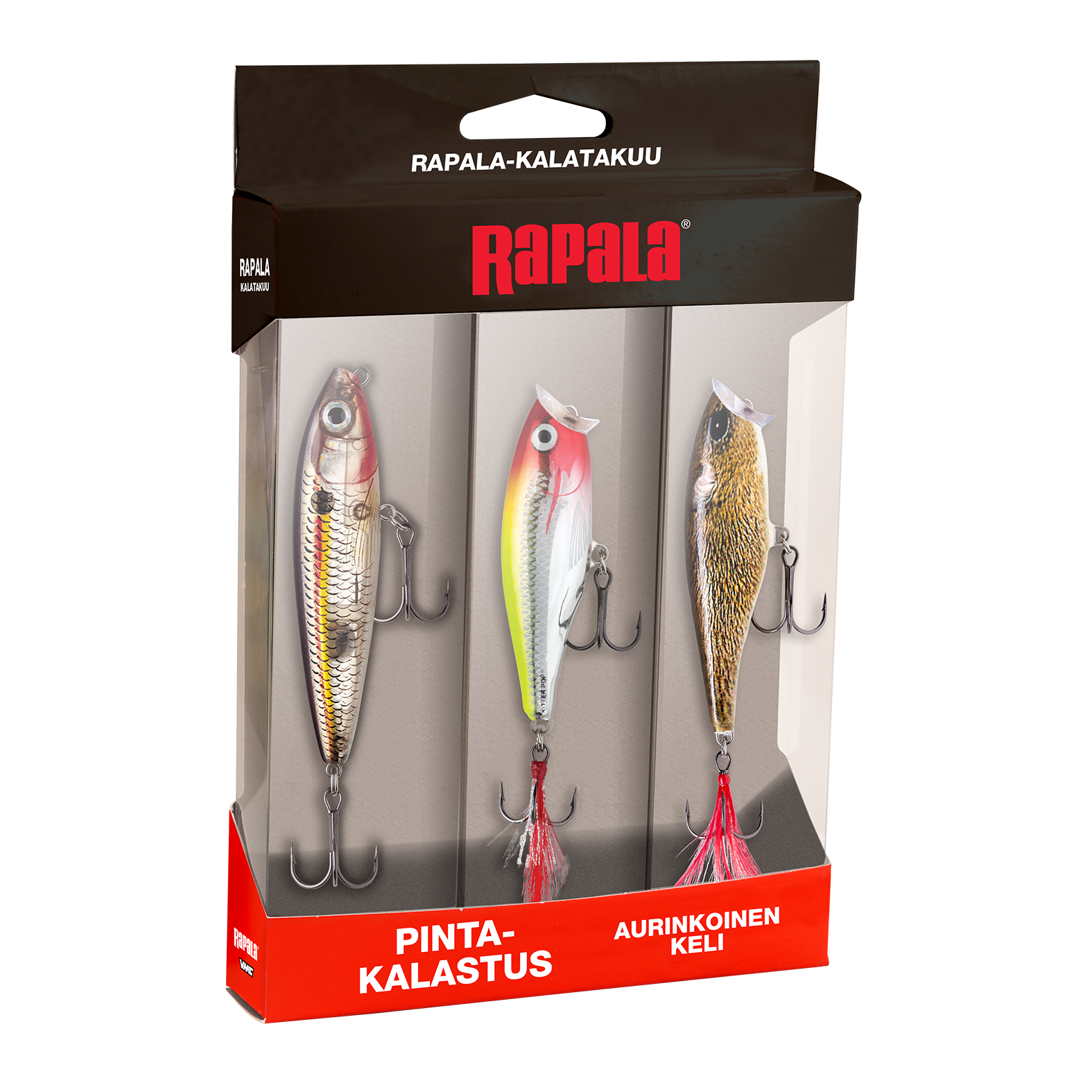 Kalatakuu Pintakalastus aurikoinen on erityisesti pintakalastukseen suunniteltu viehesarja, joka hyödyntää suomalaisten Rapala ProGuide -ammattioppaiden ja kokeneiden kalastajien asiantuntemusta. Viehesarjan valinnat perustuvat pitkäaikaiseen kokemukseen ja ne on suunniteltu parantamaan kalastustuloksia.