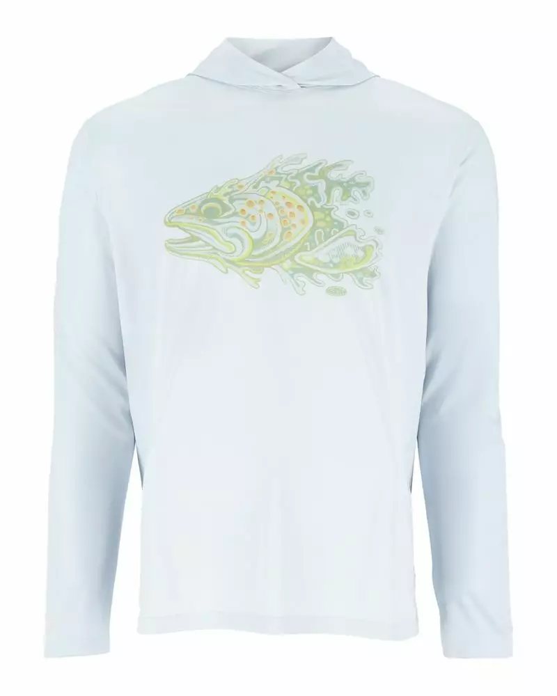 Simms Tech Hoody - Artist Series Bimini Trt Head miesten aurinkosuojahuppari, joka yhdistää tyylikkään ulkonäön ja käytännöllisyyden. Tämä huppari on suunniteltu pitämään sinut viileänä ja mukavana kuumissa olosuhteissa hengittävän, kosteutta siirtävän ja aurinkoa estävän kankaan ansiosta.