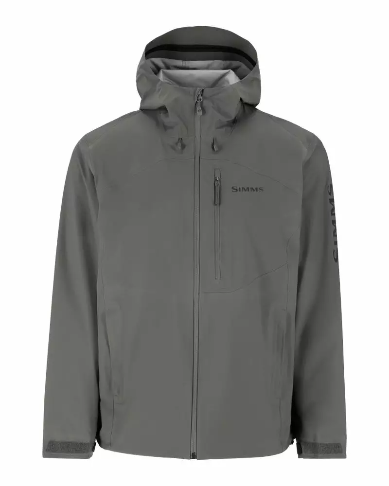 Simms Vapor Elite Jacket Gunmetal kevyt ja erittäin pakattava takki, joka tarjoaa huippuluokan suorituskykyä 3-kerroksisen vedenpitävän rakenteensa ansiosta, suojaten tehokkaasti rankkasateilta.
