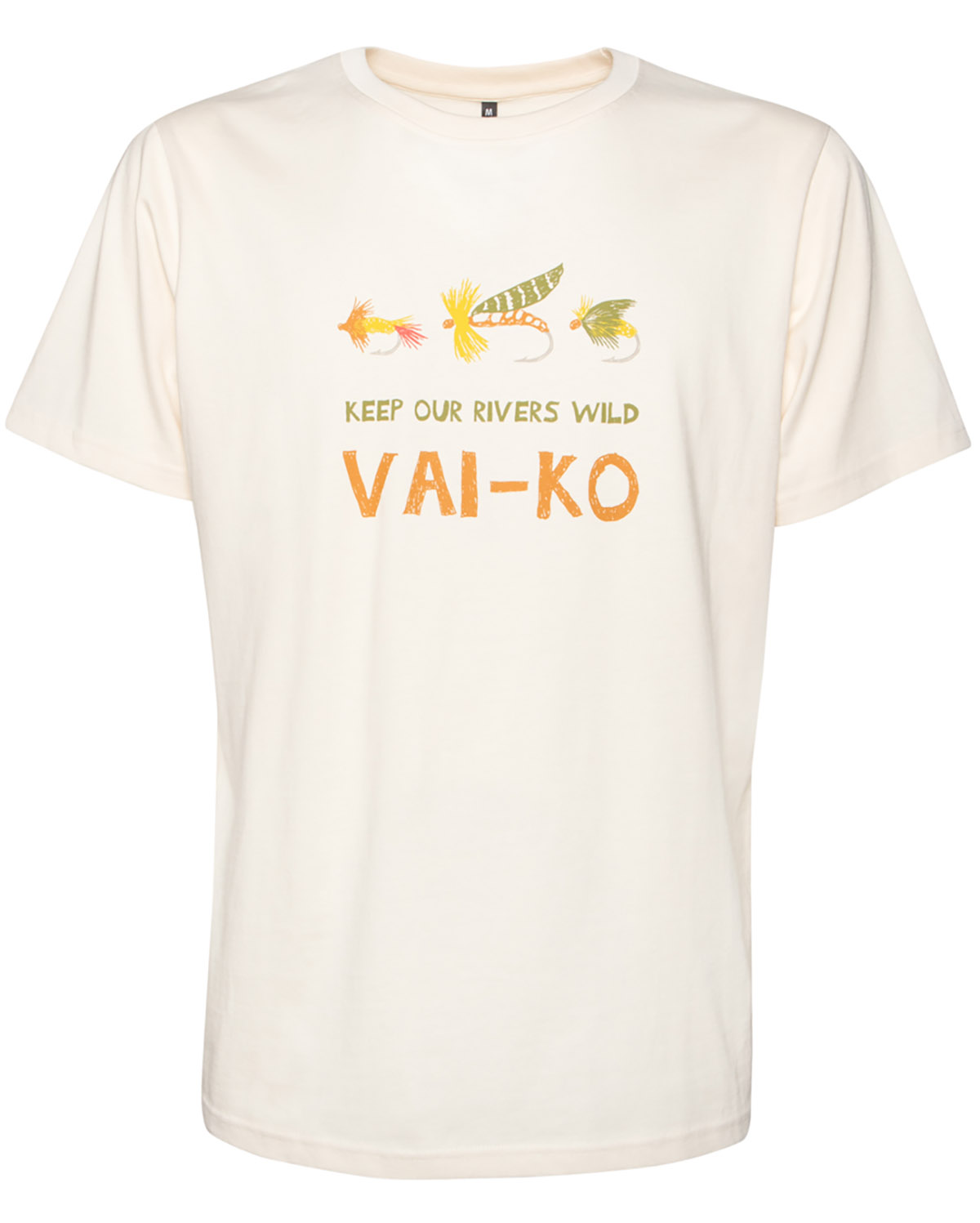 VAI-KO Flyfisher T-Shirt on luomupuuvillainen t-paita on must-have valinta jokaiseen vaatekaappiin. Klassinen pyöreä pääntie ja lyhyet hihat tekevät t-paidasta hyvän kumppanin monenlaiseen aktiviteettiin, aina kaupungista erämaahan. Pehmeä ja laadukas printti juhlistaa kestävää kalastusta ja jokiemme rikasta luontoa.