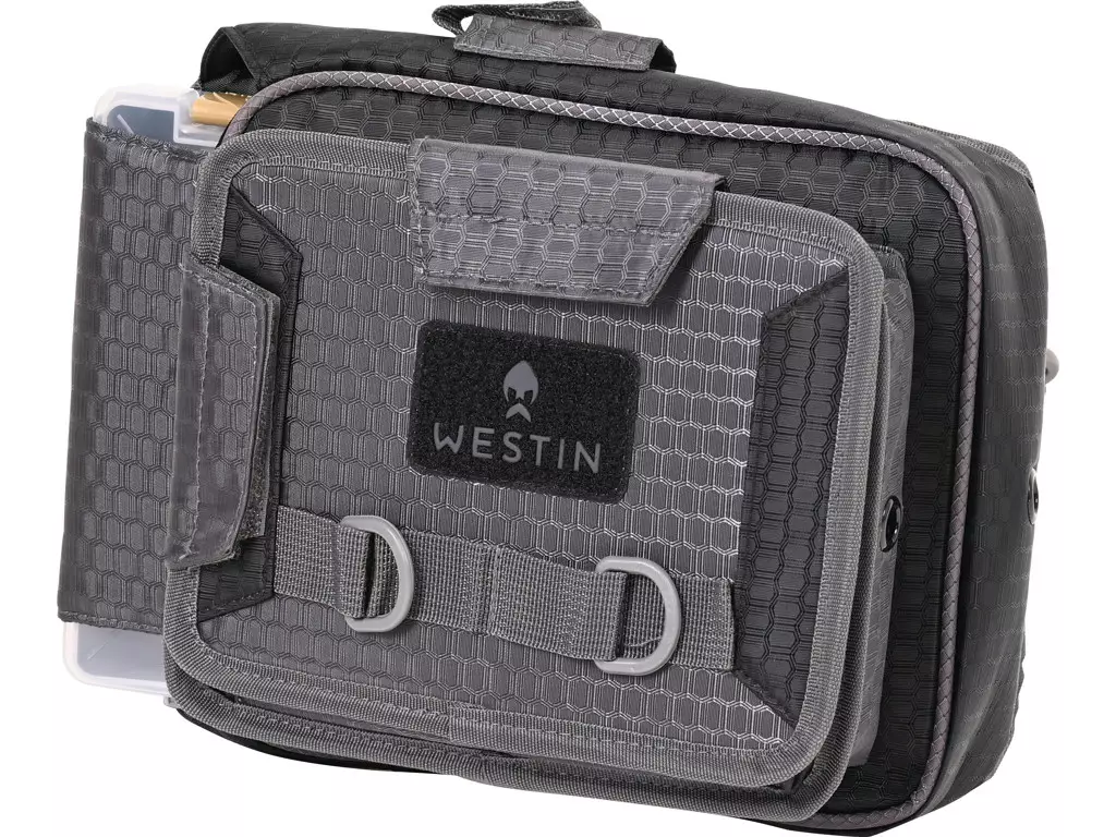 W4 Quick Bag 2 Boxes Small Titanium Black on Westinin valmistama laukku, joka on suunniteltu vieheiden säilytykseen. Laukku sisältää kaksi Westinin omaa rasiaa, joiden koot ovat 27,5x18,5x4,5 cm ja 20x14x4 cm. Laukun materiaali on polyesteriä, joka on pinnoitettu vettähylkivällä materiaalilla, mikä tekee siitä sopivan ulkokäyttöön.